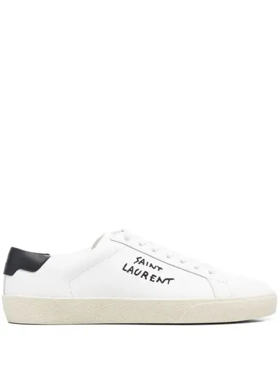 cloud white calf leather embroidered logo to the side branded insole round toe front lace-up fastening flat rubber sole