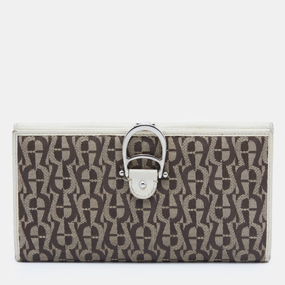 Aigner Off White/Brown Leather and Signature Canvas Continental Wallet 760390 (белый, lpn21184583)