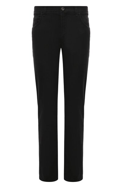 Черные зауженные джинсы с классической посадкой делает максимально комфортными высокое содержание эластичных волокон в составе мягкой хлопковой ткани. Брюки из такого материала хорошо тянутся, не мешая двигаться. Модель, окрашенную в готовом виде, украсили съемной фигурной нашивкой с серебристыми тиснеными изображением головы орла и подписью Стефано Риччи.
