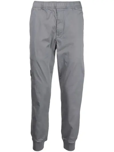 grey stretch-cotton logo print to the rear elasticated waistband two rear welt pockets elasticated ankles