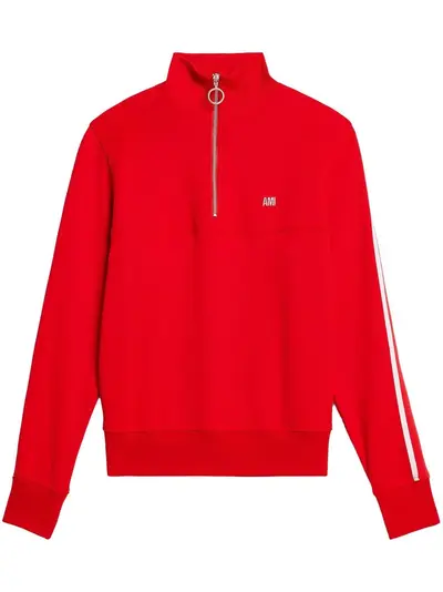 Ami Paris striped short-zip pullover sweatshirt 19594398 (lpn21520806)