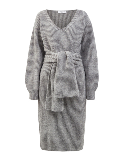 Fabiana Filippi Платье из шерсти и кашемира с широким поясом 228428 (серый, lpn21542485)