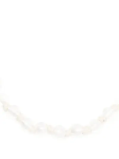 white crepe de chine bead detailing logo charm self-tie fastening