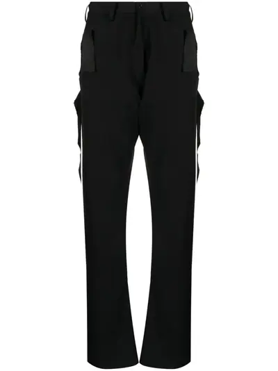 black wool belt loops front button and zip fastening two diagonal pockets to the sides two rear welt pockets straight hem