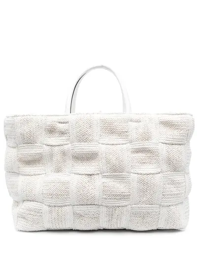 white calf leather interwoven design two top handles internal zip-fastening pocket main compartment