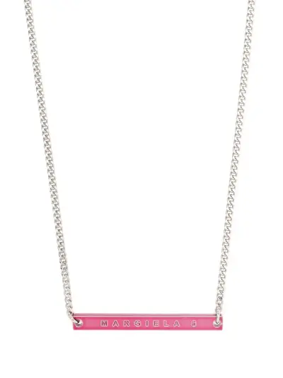 bubblegum pink silver-tone hardware engraved logo hook-clip fastening statement pendant