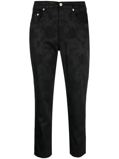circa 2000s black jacquard floral motif logo patch to the rear high waist belt loops front button and zip fastening classic five pockets slim cut cropped Condition: GOOD. This previously owned and used item is in good condition with minimal signs of use. This may include fading of material or plating and scratches.
