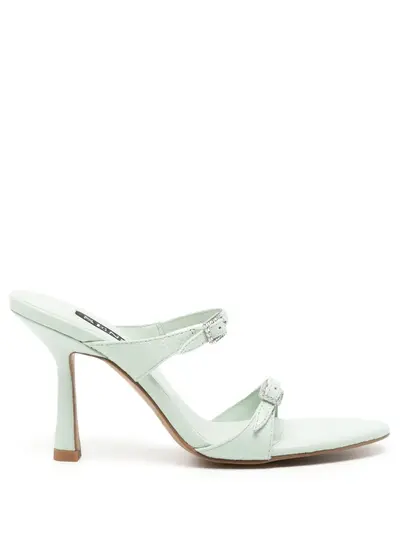 mint green leather open toe decorative buckle detail slip-on style branded footbed 90mm high heel leather sole