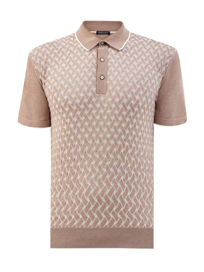 Bertolo Джемпер-поло из хлопка и шелка с фактурным узором 230245 Bertolo (бежевый, lpn21839220)