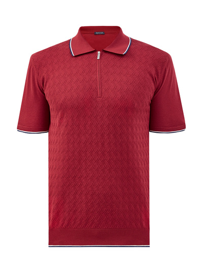 Bertolo Джемпер-поло с фактурным узором и окантовкой в полоску 230250 Bertolo (красный, lpn21839226)