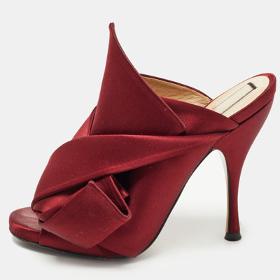 One look at this pair of N21 mules, and our hearts skip a beat. These beautiful mules have been styled with perfection just so a diva like you can flaunt them. Burgundy in shade, the pair has been designed with big knots on the satin uppers. Theyll look amazing with all your dresses this season.