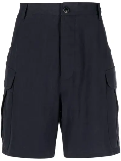 midnight blue linen/flax belt loops mid-rise wide leg front button fastening two side inset pockets two side cargo pockets two rear flap pockets