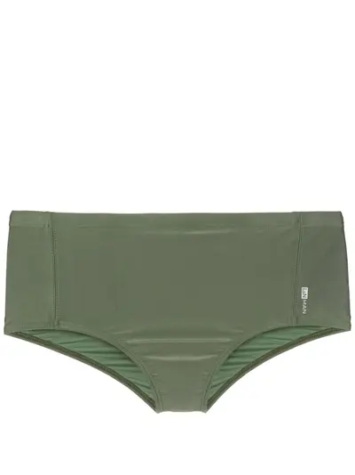 olive green stretch-design logo print to the side elasticated waistband Be mindful to try on swimwear over your own garments.