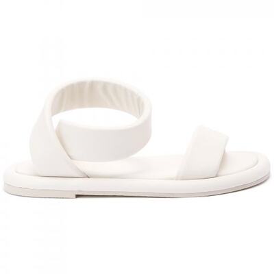Белые сандалии Barracuda с современным дизайном. Плоский силуэт с мягкими кожаными ремешками спереди и на щиколотке, стелька из натуральной кожи и гибкая резиновая подошва.