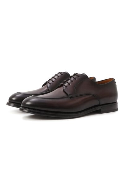 Для пошива дерби цвета крепкого кофе мастера марки, основанной Джоном Ричардсоном Барреттом, использовали мягкую гладкую кожу. На готовую пару нанесли едва заметную патину, а затем отполировали до деликатного блеска. Верх и тонкую подошву соединили в технике Blake Rapid, поэтому модель получилась легкой, гибкой и прочной.
