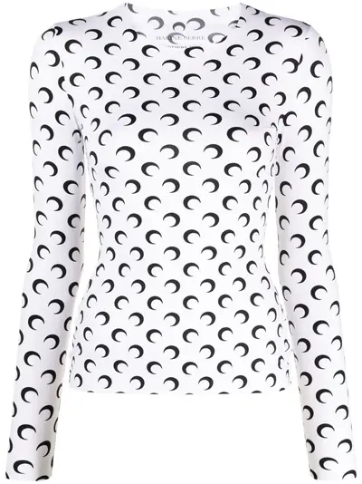 white/black recycled polyamide blend stretch-jersey crescent moon print crew neck long sleeves straight hem