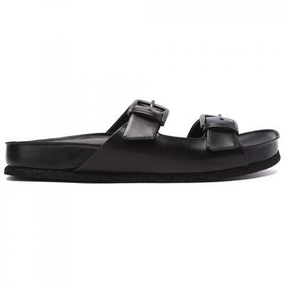 Сандалии из натуральной кожи в чёрном цвете от Pantanetti. Стильная модель для жарких дней. Сандалии выполнена из гладкой кожи, на практичной резиновой подошве и с кожаной стелькой. Регулировка посадки за счёт металлических пряжек. Сочетайте их с лёгкими летними брюками или шортами.