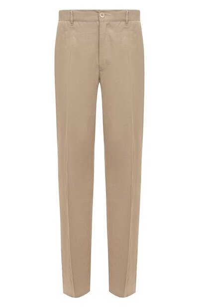 Прямые брюки цвета кофе с молоком мастера марки, основанной Стефано Риччи, сшили из тонкого мягкого льна. Ткань с характерным переплетением нитей и слегка неравномерным оттенком отлично пропускает воздух, обеспечивая комфорт в теплую погоду. Чтобы сделать посадку на талии максимально удобной, широкий пояс дополнили эластичной вставкой.