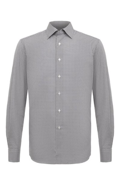 При создании черно-белой рубашки мастера марки, основанной Стефано Риччи, использовали тонкий хлопковый поплин с геометрическим микроузором. Материал из ультрадлинных волокон премиального качества хорошо пропускает воздух, а на ощупь напоминает шелк. Такое изделие гармонично впишется в нестрогий офисный комплект.