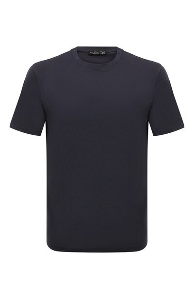 Темно-синюю футболку мастера марки, основанной Генрихом ван Лааком, выполнили из легкого хлопкового джерси, которое хорошо пропускает воздух и отводит влагу. Для его производства использовали длинноволокнистое сырье премиального качества, поэтому материал получился особенно мягким и шелковистым на ощупь.