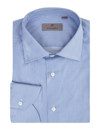 Canali Рубашка из хлопкового поплина с принтом в полоску 232636 (синий, lpn22120109)