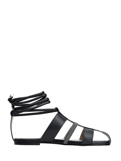 Fabiana Filippi Сандалии из мягкой кожи с блестящими цепочками 232984 (чёрный, lpn22142007)