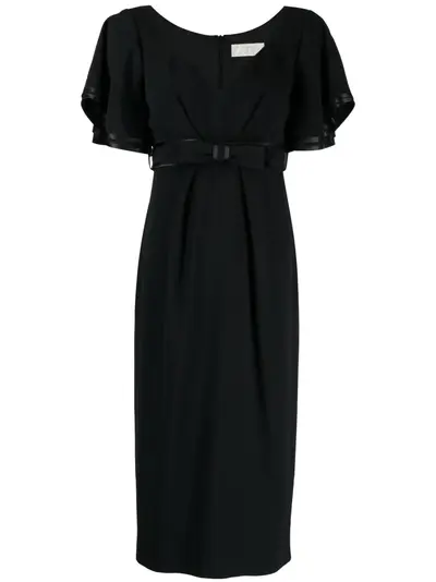 black bow detailing V-neck short sleeves rear zip fastening below-knee length