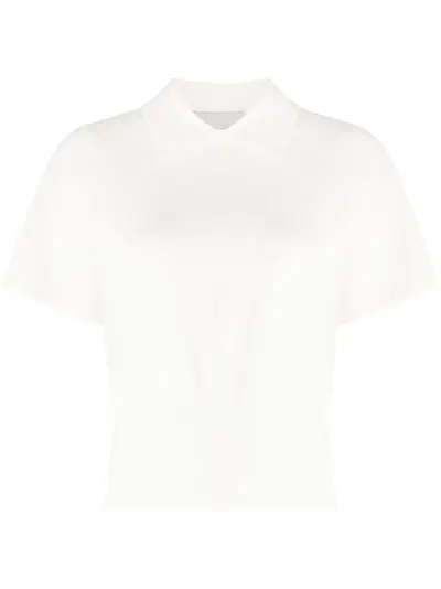 cream white stretch-design knitted construction crepe texture polo collar short sleeves ribbed hem