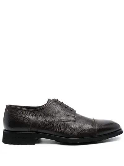 dark brown calf leather calf suede front lace-up fastening almond toe branded insole