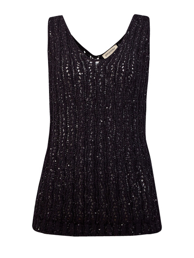 Gentryportofino Топ из хлопковой пряжи ручной вязки с пайетками 233917 (чёрный, lpn22232339)