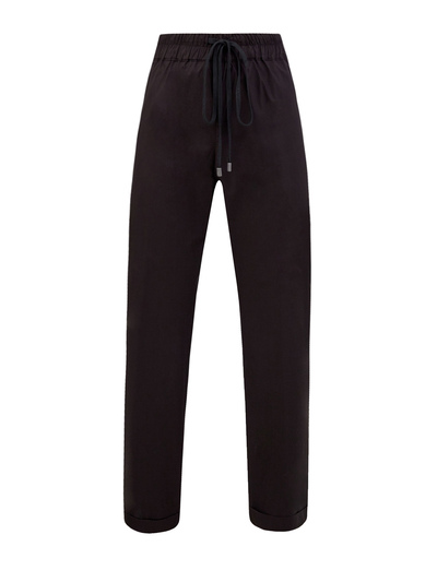 Брюки слегка укороченного кроя от Gentryportofino созданы из дышащего хлопка в черном цвете. Однотонное исполнение и лаконичный дизайн делают модель универсальным дополнением расслабленных образов. Эластичный пояс на регулируемой кулиске обеспечивает комфортную посадку по фигуре. Детали: отвороты по нижнему краю, прорезные карманы. Сделано в Италии.