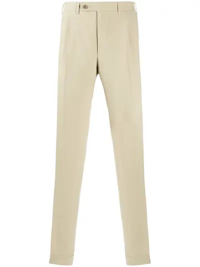 Beige wool straight-fit tailored trousers from Canali featuring a waistband with belt loops, a button and zip fly, side pockets, creases, two back buttoned welt pockets and a regular length.