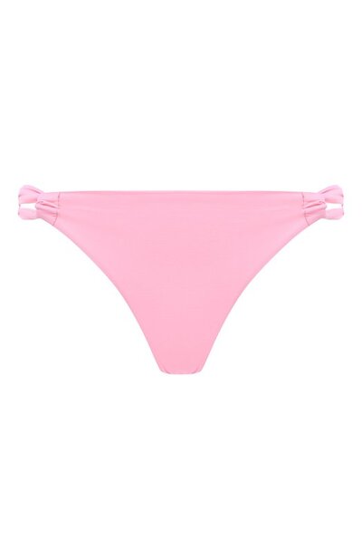 Эти лаконичные плавки-бикини выглядят не менее эффектно, чем купальники с принтами и богатым декором. Неоново-розовый оттенок делает модель из эластичного текстиля подчеркнуто яркой, а широкие двойные ленты из такого же материала формируют деликатные драпировки сбоку.