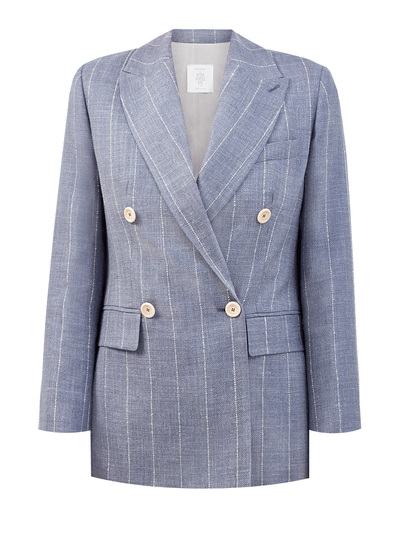 Eleventy Жакет из шерсти, шелка и льна в тонкую полоску 234977 (голубой, lpn22304744)