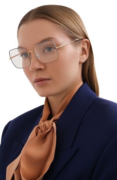 Для изготовления оправы использовали легкий, но прочный металл с золотистым покрытием. Тонкие линии не загораживают обзор, а благодаря подвижным носоупорам аксессуар с полупрозрачными заушниками садится точно и практически не ощущается на лице. Форму квадратных ободов подчеркнули черными накладками.