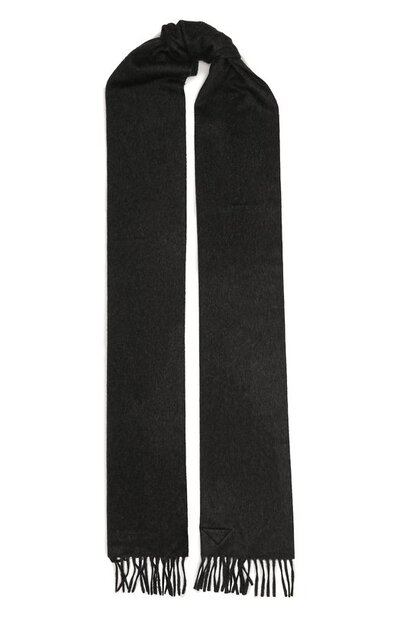 Длинный шарф графитового оттенка почти не ощущается на теле. Модель с бахромой связали из невесомой кашемировой пряжи, которая сохраняет тепло лучше шерстяной, но при этом не допускает перегрева. Однотонный лаконичный аксессуар впишется в образ любой степени формальности, сочетаясь и с пальто, и с курткой, и с пуховиком.