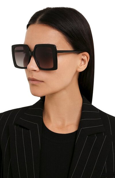Крупные солнцезащитные очки с черной квадратной оправой надежно защитят глаза от вредного воздействия солнечных лучей. Для изготовления аксессуара с дымчатыми градиентными линзами мастера марки использовали легкий прочный ацетат.