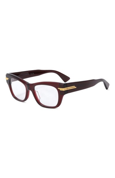 Оправа глубокого бордового оттенка почти не ощущается на лице. Для ее создания выбрали прочный, но легкий ацетат, который моментально подстраивается под температуру кожи. Боковые части аксессуара подчеркнули глянцевыми деталями из золотистого сплава.