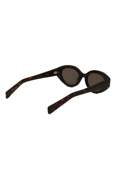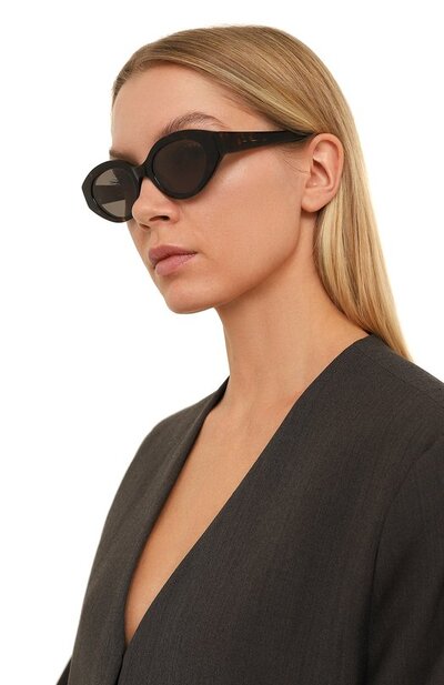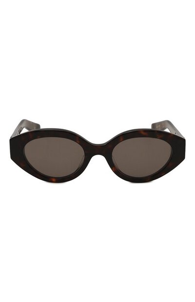 Для изготовления широкой фигурной оправы этих очков мастера марки использовали легкий ударопрочный ацетат, который всегда остается теплым на ощупь. От материала с крупным черепаховым узором не отвлекают внимание тонкие нейлоновые линзы, блокирующие 100% вредных солнечных лучей.