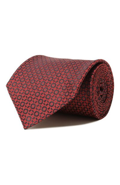За основу геометрического узора для этого галстука дизайнеры марки взяли архивный рисунок, сделанный самим Стефано Риччи. Чтобы визуально придать мотиву объем, его выполнили на черном плотном шелке нитями насыщенного красного цвета, а деликатные акценты расставили белыми вкраплениями.