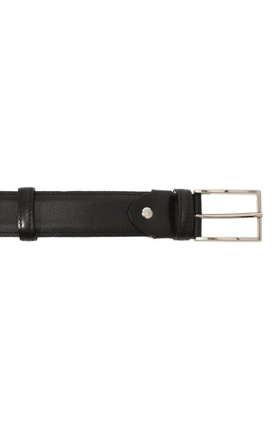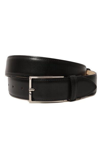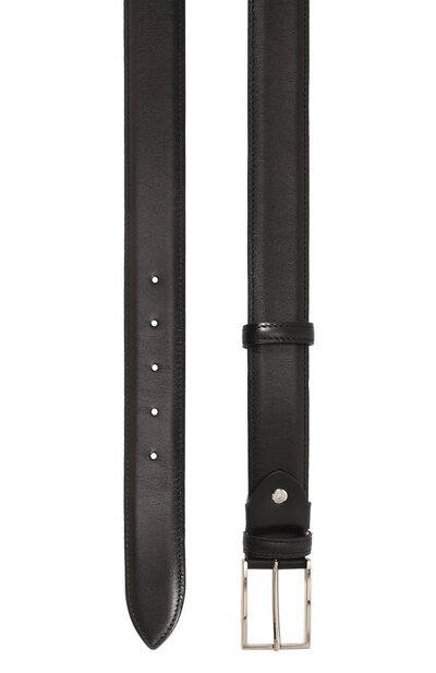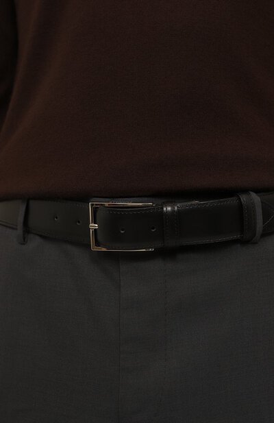 Черный лаконичный ремень с прошитыми краями мастера бренда изготовили вручную из гладкой кожи растительного дубления. Прочный материал с деликатным матовым блеском со временем покрывается благородной патиной, а изделия из него приобретают по-своему уникальный вид.
