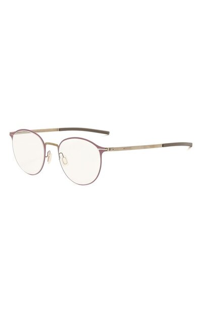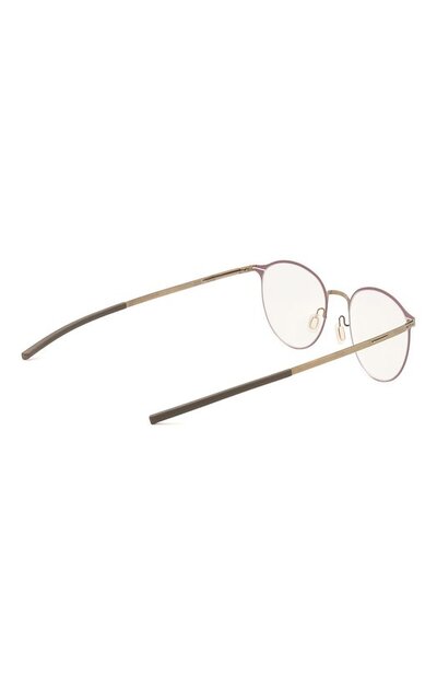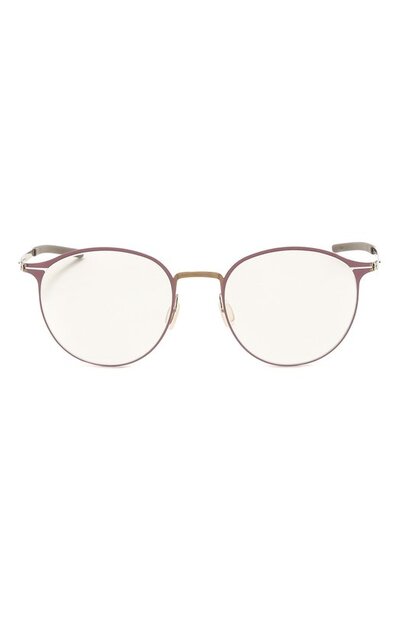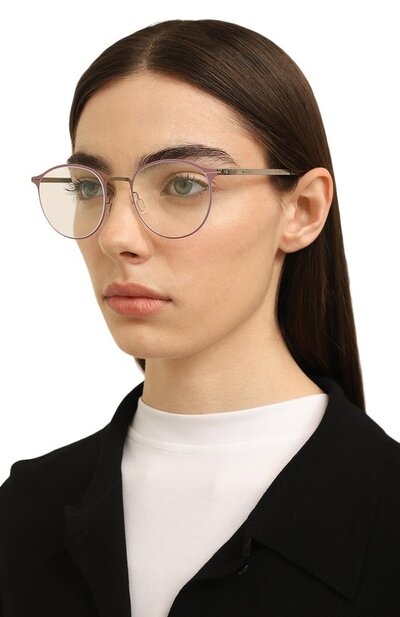 На предельно узкой оправе из прочной нержавеющей стали чередуются три оттенка. Круглые линзы обрамляет сиреневый цвет, который сменяется серым на полимерных заушниках и античным серебром на дужках и мосте. Команда марки приглушила все тона, поэтому аксессуар выглядит лаконично.