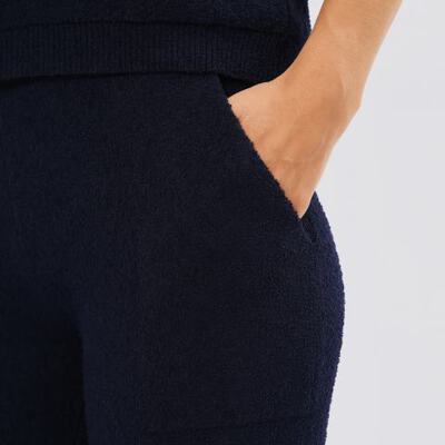 Чёрные брюки из трикотажной ткани идеально дополнят повседневный образ. Модель выполнена на резинке, из трикотажной ткани, в составе которой 68% хлопка и 32% полиамида. Сочетайте брюки с поло или толстовкой из капсульной коллекции.