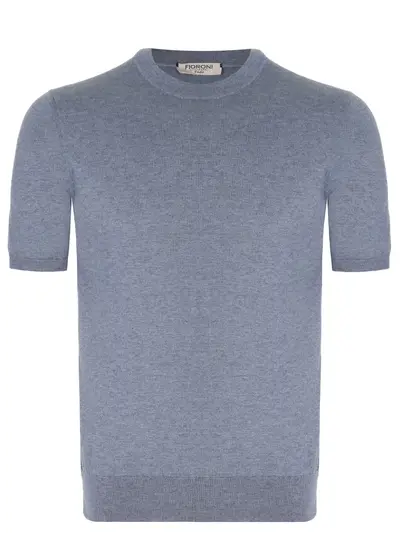 -Серо-голубая трикотажная футболка из мягкого смесового хлопка с добавлением кашемира от FIORONI CASHMERE.