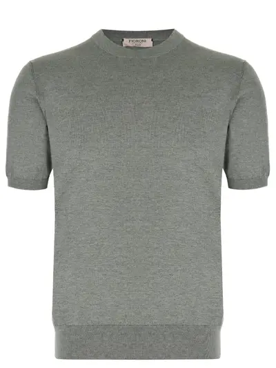 -Зеленая трикотажная футболка из мягкого смесового хлопка с добавлением кашемира от FIORONI CASHMERE.