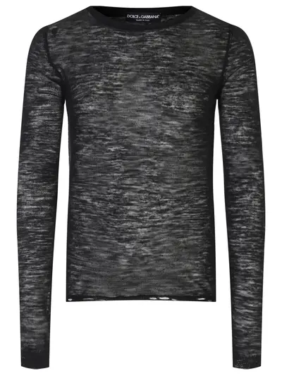 -Черный полупрозрачный джемпер из смесового льна от DOLCE&GABBANA.