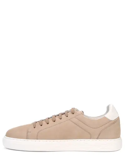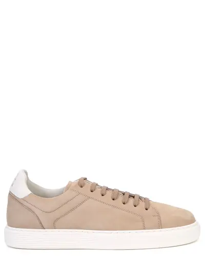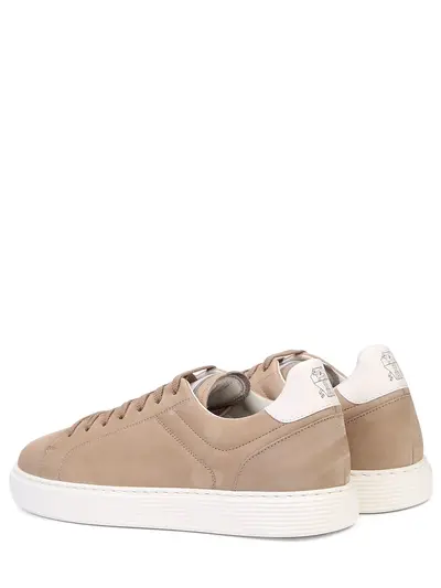 -Бежевые базовые кеды из бархатистого нубука от BRUNELLO CUCINELLI.