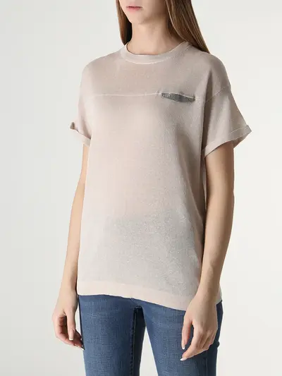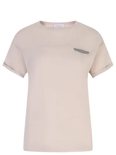 -Бежевая футболка из тонкого трикотажа на основе смесового льна от BRUNELLO CUCINELLI.