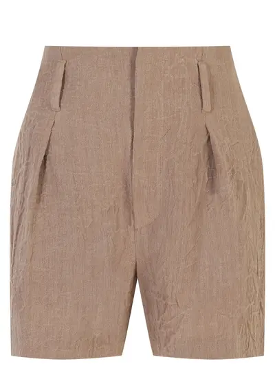 -Коричневые шорты из крэшированного льна от BRUNELLO CUCINELLI.