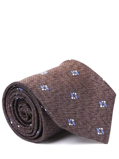-Коричневый с принтом галстук из шелка от KITON.